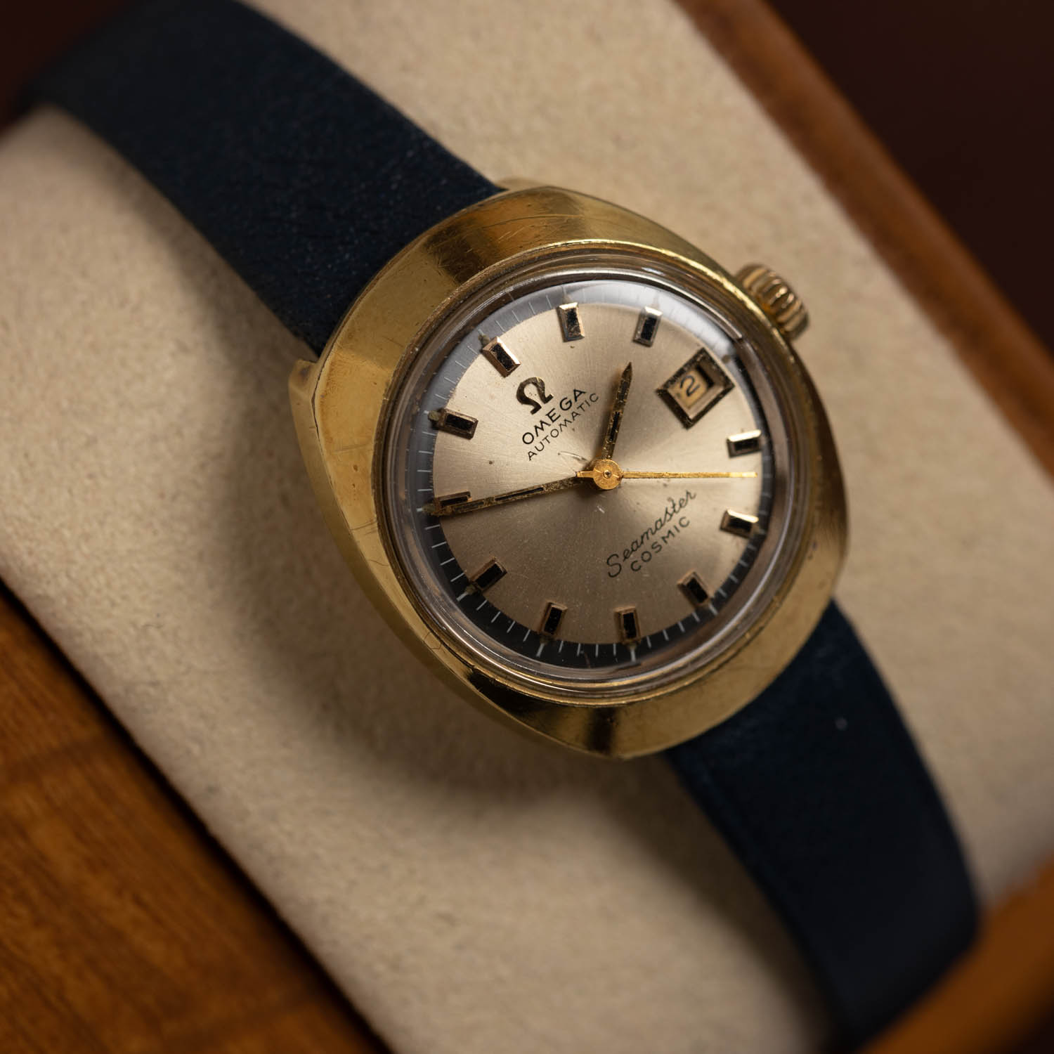 Vintage Omega strap – worth keeping for your collection, but we recommend wearing a new contemporary strap for everyday use. We do not provide a warranty for original vintage straps