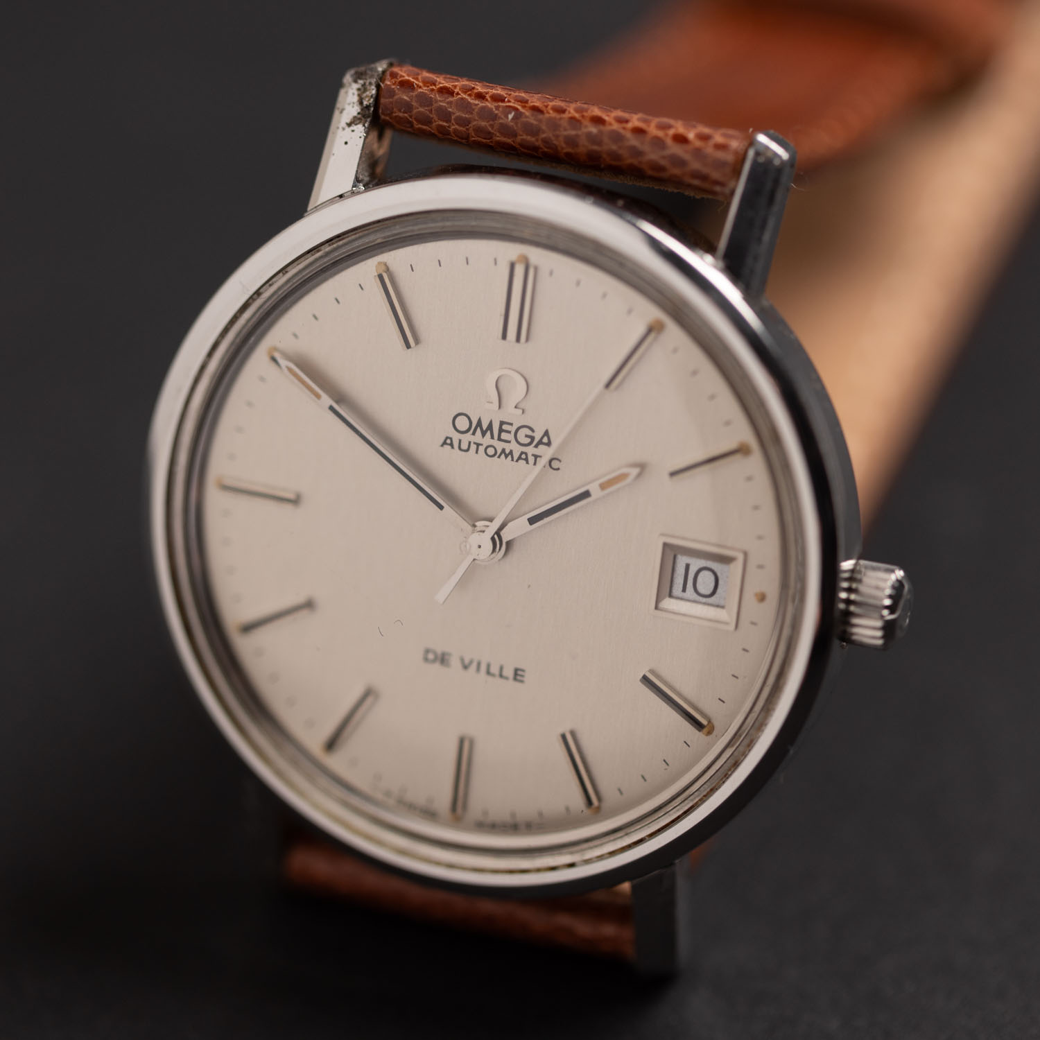 Brown lizard strap. In every watch we can change the strap on request